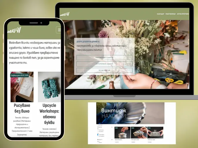 Dunav41, a shared space that houses a small crafts business and graphic designers/freelance artists, utilized Builderly to develop a multifunctional website within a month. This platform supports their creative workshops for small groups and serves as a central hub for their activities online.