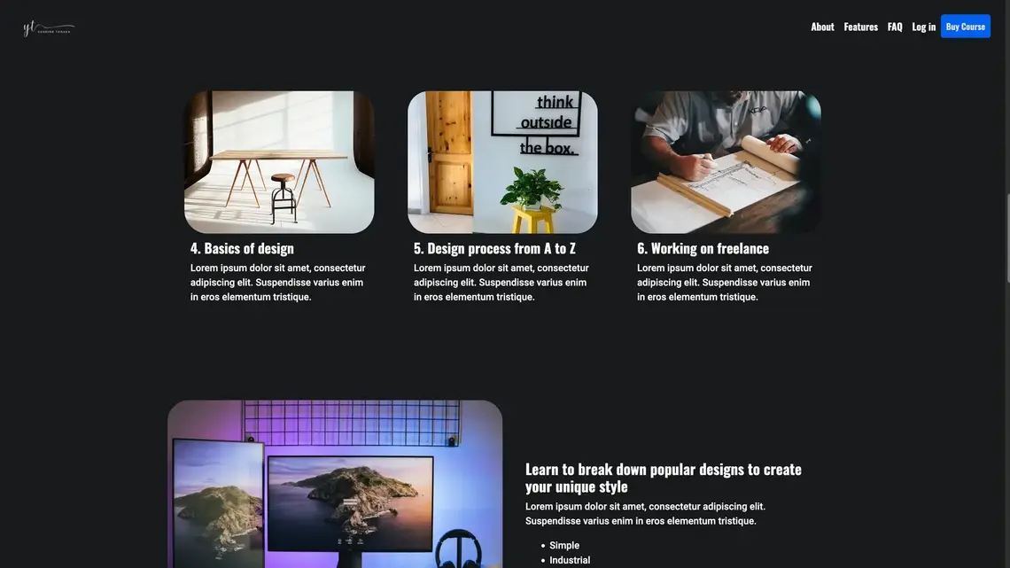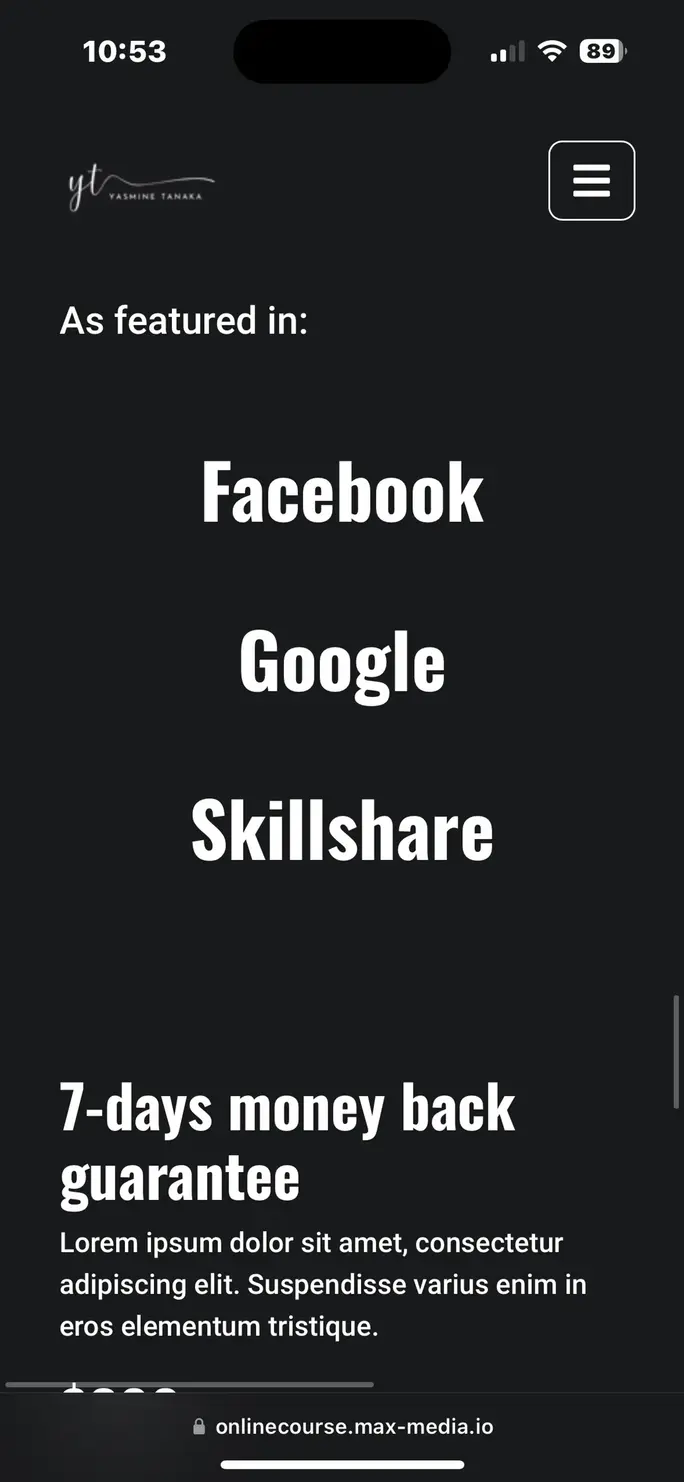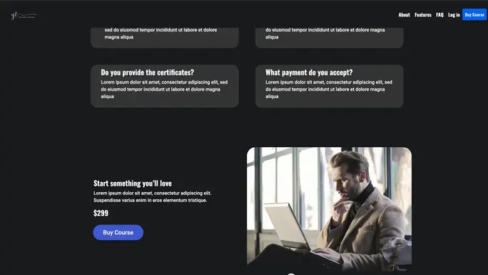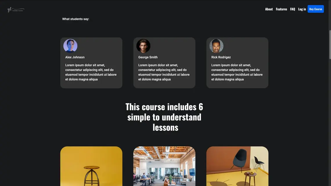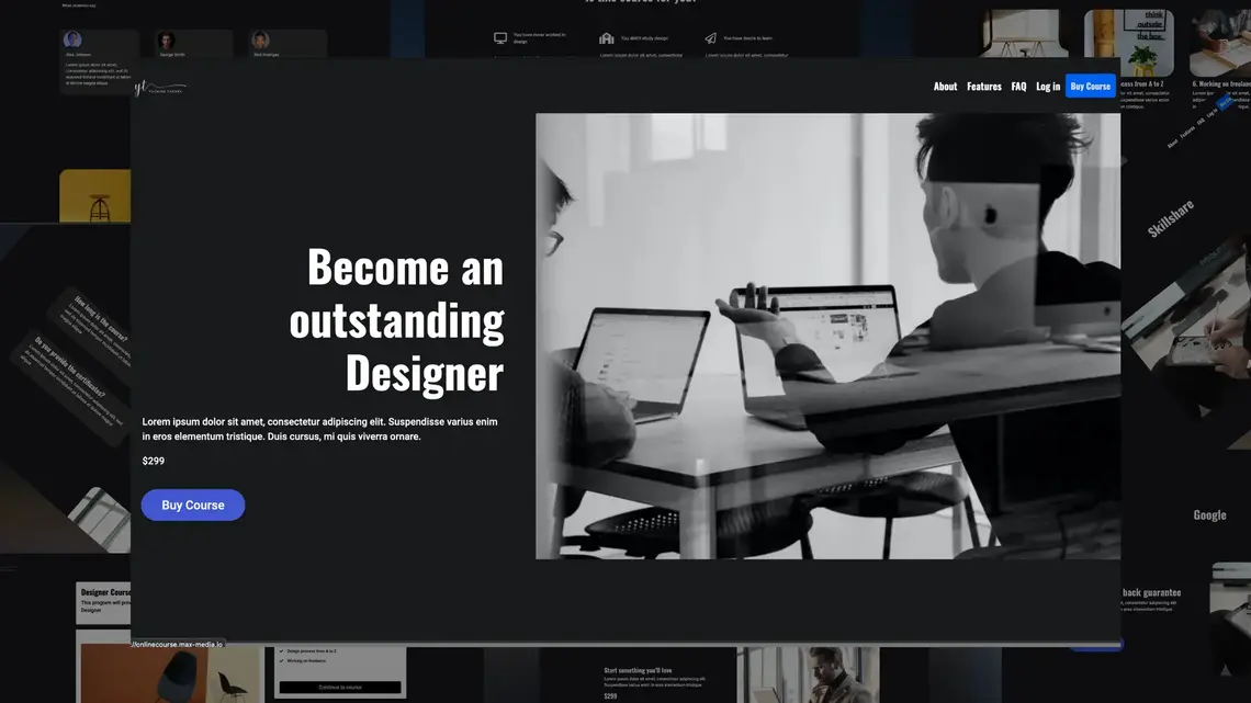 Online Course е темплейт от една страница, предназначен за услуги със записване, онлайн курсове и абонаментни плащания.